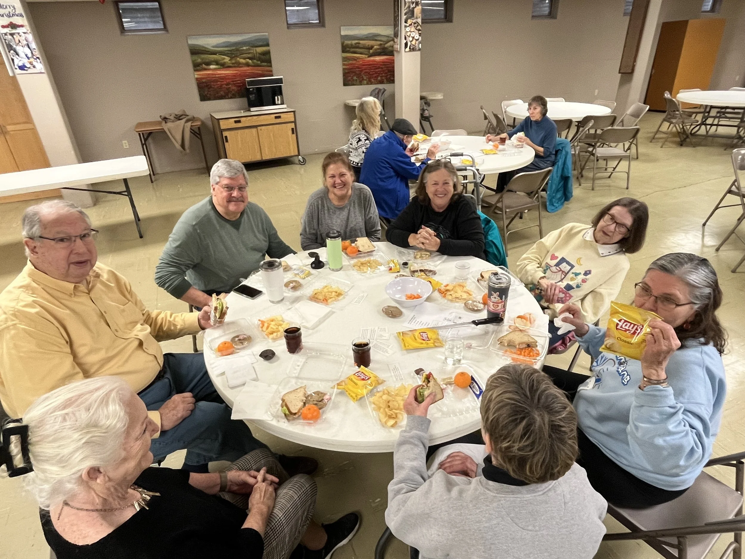 Join us on the 2nd Thursday of each month at Noon in the Fellowship Hall. Reservations must be made by the Sunday before so Dick Wheat can place the catering order. After lunch we play a few games of BINGO!